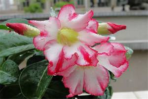 沙漠玫瑰也是家庭栽培花草中的常胜将军,很多花友都喜欢在阳台上养上一盆,不光是花色漂亮,花期长,主要是它非常的好养活,只要有一盆好基质,加上充足的光照,就能开出非常漂亮的花朵。养殖沙漠玫瑰要注意浇水的工作,一定要做到干透浇透,防止水浇了出现积水烂根的现象,除此之外,就是在夏季高温时,稍微的庇荫处理一下。