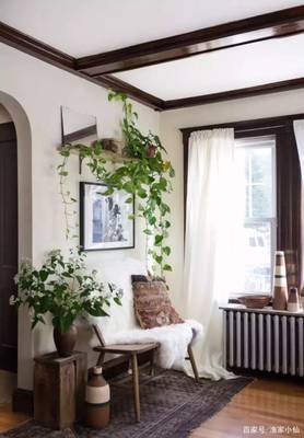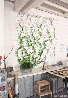 充分把植物的攀附性利用起来,给墙面增加一片绿。不过,这里需要说明一下,不要让植物直接攀在墙体上,植物会吸收墙体里的水分,导致墙体开裂。