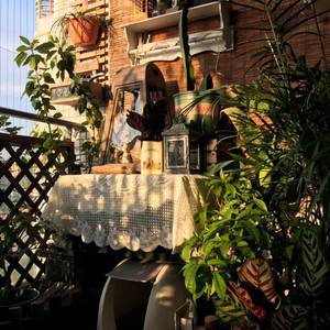 3.矮牵牛、玫瑰、香草、天竺葵等植物可以种在阳光充足的地方,长寿花、玉簪可以种在阴凉的地方。盆栽可以单个,也可以组合,也可以通过挂盆和悬挂来营造层次感,同样可以节省阳台花园的占地面积。配以精美的山水小品。一个漂亮的mini 阳台花园应该尽可能的搭配风景小品,可以让mini 花园更加精致,而这些风景小品也能很好的体现主人的品味和心情。小小的雕塑,清脆的风铃,漂亮的花盆,可以让阳台花园更加生动活泼。