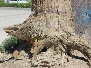 3、用密封性良好的塑料纸包住靠近树根处的树干,将树根“憋死”。树木生长也是需要呼吸的,如果将靠近树根的树干处包住,阻碍树木的呼吸作用,树根很快就会因为缺氧而死。也许有的人会说,树叶也可以进行呼吸作用啊。但是你要知道,树叶呼吸作用吸收的氧气远远不足以供应树木生长,特别是树根距离树叶较远,树叶吸入的氧气很难及时供应树根的呼吸。