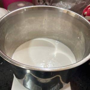 第六步,将米浆,高筋面粉,干酵母搅拌均匀。