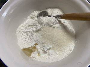 5.粉类搅拌一下,把水慢慢加入粉粉中,边加边搅拌