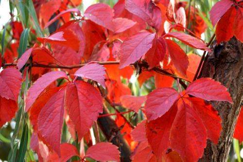 五叶地锦(学名:Parthenocissus quinquefolia(L.) Planch.)是葡萄科,地锦属木质藤本植物。小枝圆柱形,无毛。卷须顶端嫩时尖细卷曲,叶片掌状,顶端短尾尖,基部楔形或阔楔形,边缘锯齿,上面绿色,下面浅绿色,两面无毛,网脉不明显; 叶柄无毛,多歧聚伞花序,花蕾椭圆形,萼片碟形,无毛;花瓣,花药长椭圆形,花盘不明显,子房卵锥形,果实球形,种子倒卵形,6-7月开花,8-10月结果。
