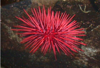 6、红海胆又名巨紫球海胆,生活在浅滩区域,有时候是岩石上,或者低潮线向下90米的水中,但是它们不会呆在波涛汹涌的地方。它们把自己的体刺用作高跷在海底爬行。如果你发现一只红海胆,记得告诉你的长辈,因为一些个体的寿命超过了200年。
