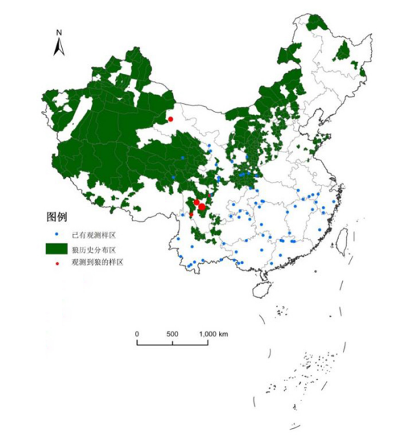 中国狼的历史分布图