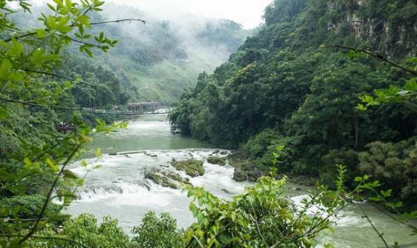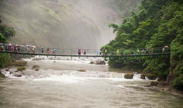 滴水滩景区,距离核心景区较远,是整个黄果树景区中最高的瀑布,下方就是霸陵河峡谷,瀑布就悬挂在关索岭大山之上。