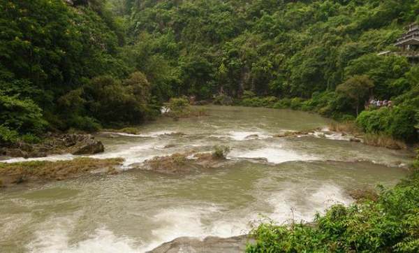 陡坡塘景区,位于黄果树大瀑布上游。每到洪水来临之前,瀑布都会发生巨大的轰隆声,仿佛是人在吼叫,亦称为“吼瀑”。