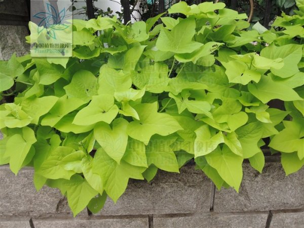 金叶番薯,多年生草本植物。原为野生,后因为其具有一定观赏价值,近年来广泛栽种作为道路和园林的绿化植物,也可以作为家庭盆栽。金叶番薯叶子呈心形,黄绿色,花朵为喇叭形,块茎可食用。