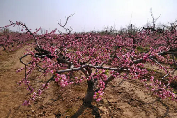 通常平地上密度为3x4米,55株/亩;坡地为2x4米,83株/亩。视品类、树势、土壤层肥瘦具体情况,株行间距可适度放宽或缩小。桃树根茎比较发达,吸收根多,但分布浅,主要是集中在土表20-40公分。通常秋季需做好1次深耕,以熟化土壤层。生长发育季节要常常中耕清除杂草,保持土壤层疏松透气,减少病害主要来源。