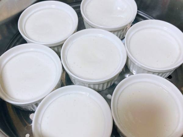 7、醒发好后,蒸锅里加入适量的水,冷水上锅蒸,模具上最好盖上盖子,水开后蒸半个小时,蒸好后焖5分钟再出锅。