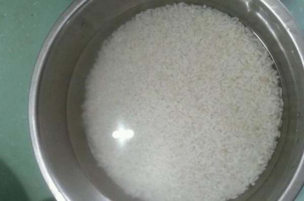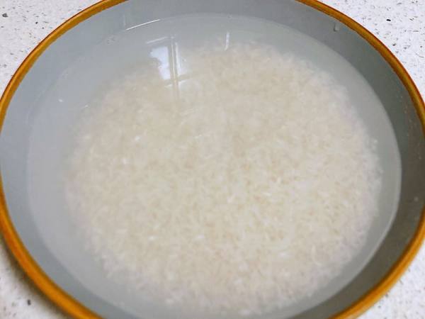 2、把大米洗干净,用水浸泡一晚上,也可以直接用大米粉,比较方便,用大米的话一定要提前浸泡,浸泡好后把水倒掉。