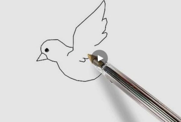 4、一笔画的鸽子:首先画出鸽子的眼睛,随后一笔带过画出鸽子的翅膀和羽毛,还有小脚,注意细节的勾画要谨慎。