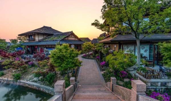 一条“香月花街”的石板路,从南到北地贯穿了小镇。这里处处充满禅意,极简的设计,一座草屋,一扇木门,无处不透露出其中的精髓。