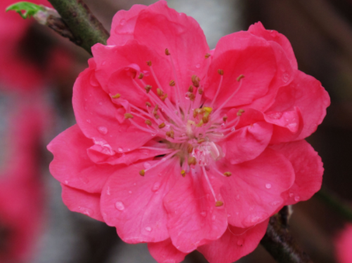 桃花,不仅可供观赏,而且也是一味良药。桃花含有山柰酸、香豆精、三叶豆甙、柚皮素、维生素A、B、C等成分,味苦性平,无毒,治病疗疾,内外咸宜。桃花又是美容护肤品。