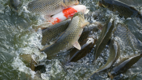 鲤鱼原产亚洲,后引进欧洲、北美以及其他地区,杂食性。鳞大,上腭两侧各有二须,单独或成小群地生活于平静且水草丛生的泥底的池塘、湖泊、河流中。