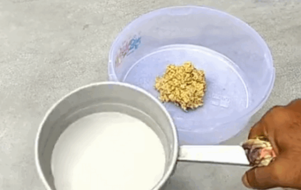 1、准备捣碎的生姜,和清水。