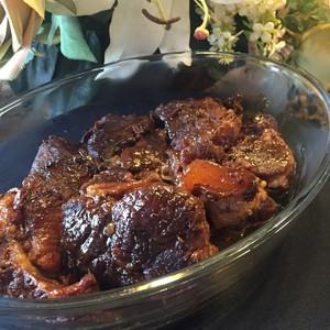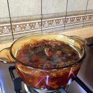 3.程序结束,从高压锅中倒出牛肉,继续在煤气灶上大火煮至汤汁浓稠即可。