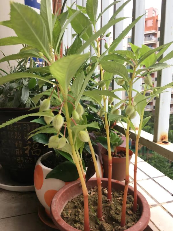 3、凤仙花有一个月时间处于成长期,快速生长出茂盛的叶子,大约在45天左右开始结出花苞。