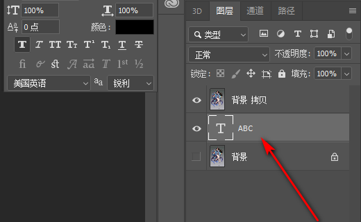 2、然后把文字图层放到图片下面。