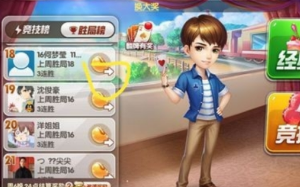 2、然后会看到上面的胜局榜,点击胜局榜;