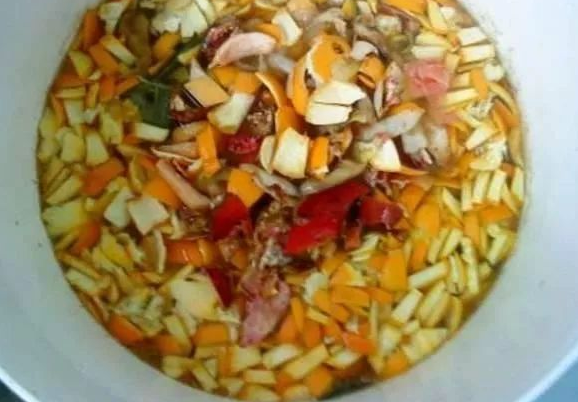 将新鲜橘皮放在水中,浸泡24小时,水会变成了金黄色。然后可以用这些水兑一些清水,直接浇在盆土上即可。