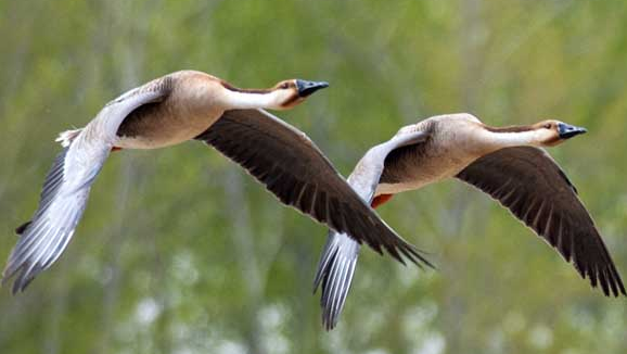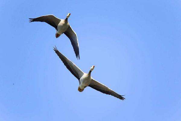 另外,大雁排成整齐的人字形或一字形,也是一种集群本能的表现。因为这样有利于防御敌害。雁群总是由有经验的老雁当“队长”,飞在队伍的前面。