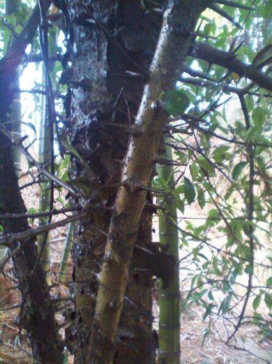 各位大神,知道这是什么树吗?四季常青、生长缓慢,树枝上带有针状尖刺。木质坚硬,里面红褐色,入水秒沉