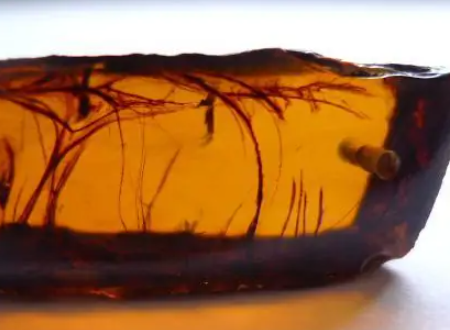 4、抚顺琥珀,辽宁省抚顺市特产,中国国家地理标志产品。具有树脂光泽、珍珠光泽,透明,硬度2—2.5,密度1.1—1.16,折射率为1.539—1.545,150℃软化,300℃熔融燃烧,有芳香味。摩擦时可带电。导热性很差,用嘴唇接触时,又暖感。