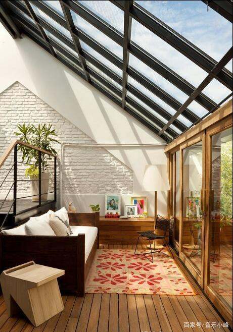 在国外,阳光房的做法早就非常普及了。由于顶楼的风尘较大,如果做成开放式露台,实用性能就大大减少了。