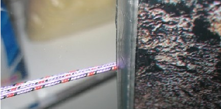 2、然后用磨石磨边,要磨成毛糙面,在制作水族箱中称这个程序为“磨口”。