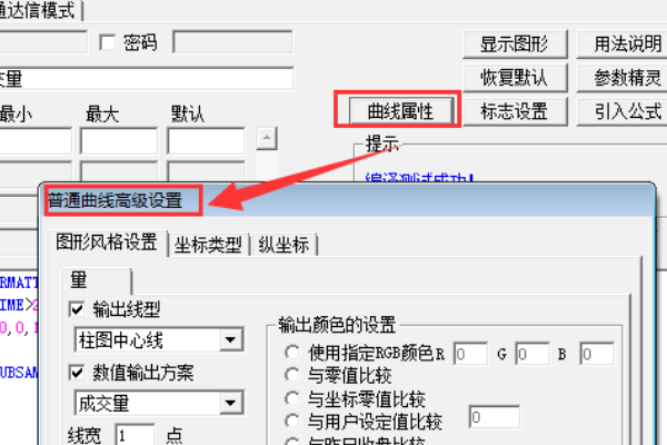 5、单击[曲线属性],可以看到系统设置的选项供用户修改。 设置为所需的红色和绿色。