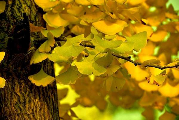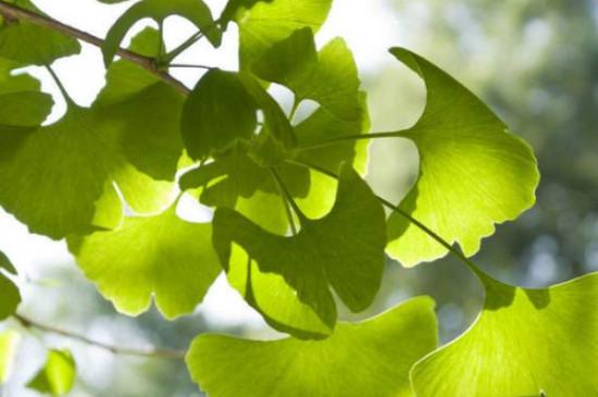 扇形的叶片,形状像展开的伞子,叶片中间有明显的缺口,底部为宽椭圆形。如银杏的叶、四叶草、害羞草的叶片,一般长度为5~20厘米,宽度为2~5厘米,叶片表面光滑,颜色从绿色变成黄色。