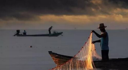 另外,渔民还要了解鱼群动态。老一辈有经验的渔民出海时候能够凭借洋流运动,来判断鱼群走向,加大捕捞收获能力,但是现在很多渔船都配备了声纳系统,声纳系统可以判断50米深海面内附近是否有鱼群出没,大大增加捕捞的准确性。各位,最常见的渔民捕鱼方式应该就是撒网。用的是一种粘网(一般有三层网丝),撒在海水中,上面有浮标,下面有铅块,网能在海