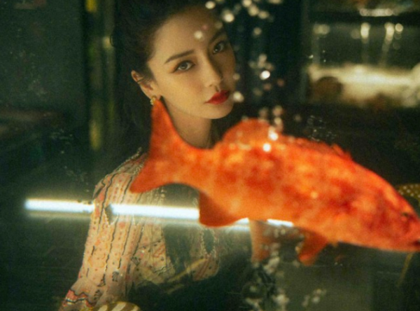 Angelababy金鱼大片。但见Baby化了精美的妆面,五官立体深遂如芭比娃娃一般动感美丽动人,穿着枝叶束身长连衣裙,尽展曼妙身型。锦鲤、玻璃缸、水做为市场前景,显现出Baby平静温婉但又不缺妖媚性感迷人的美,佳人与鱼紧密结合,网民都禁不住感叹Baby便是二者的集合体“美人鱼公主”。