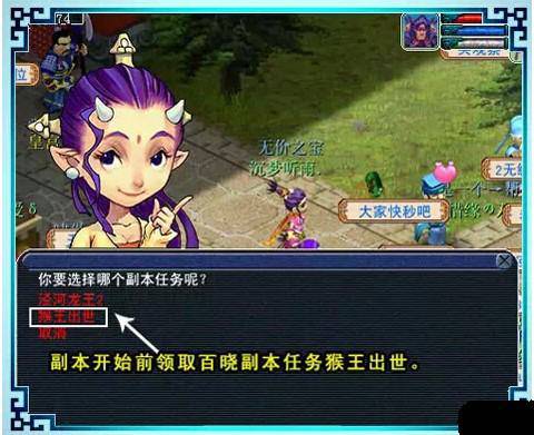 2.在花果山地图场景内,找到“苦战中的猴精”,用ALT+A攻击即可进入战斗任务,击败混世魔兵即可完成本次任务,猴精死亡任务失败,需重新任务;混世魔兵血量3000左右,猴子会普通攻击怪物,抗性较差,要保护好猴子别被火烧死,玩家可以给猴子补血保证其生存。