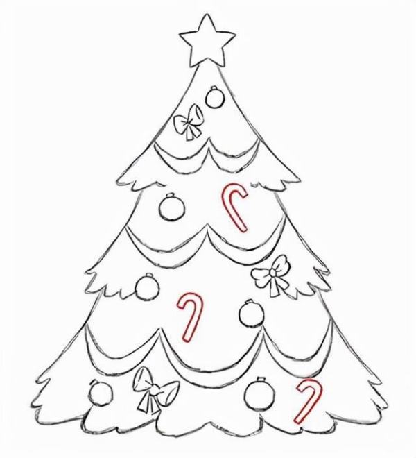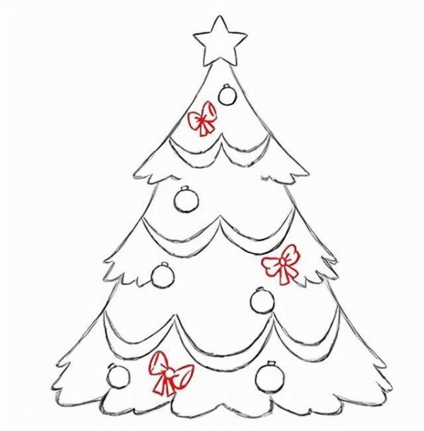 继续在树上画上几个蝴蝶结,位置大家可以自己随意定,不要太多。