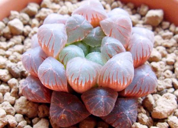 【姬玉露】植株非常小,可以说是最小的一种玉露了。叶片上有深色的线状脉纹,在阳光较为充足的条件下,脉纹会变为褐色或红色,叶顶端有短须或无须。