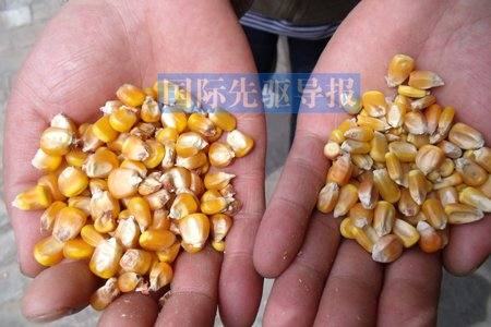 (图中左侧的为转基因玉米,右侧为正常玉米。)