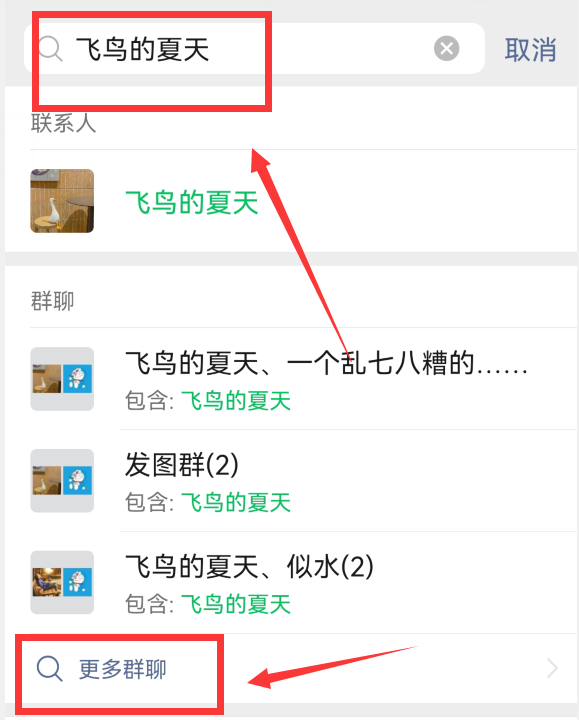 2、输入自己的昵称,在群聊这里点击【更多群聊】,就可以查看自己加入的群。