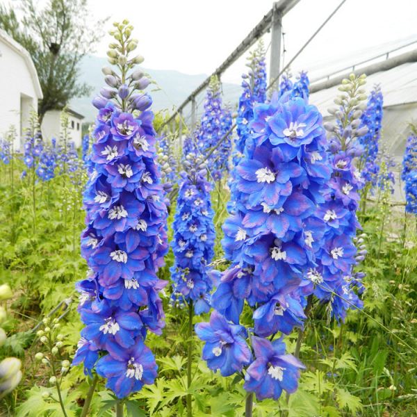 飞燕草是一种多年生草本植物,它的植株比较高,花型十分美观,花色多为蓝色、紫色、粉色、白色等,开花时绚丽多彩,很具观赏性