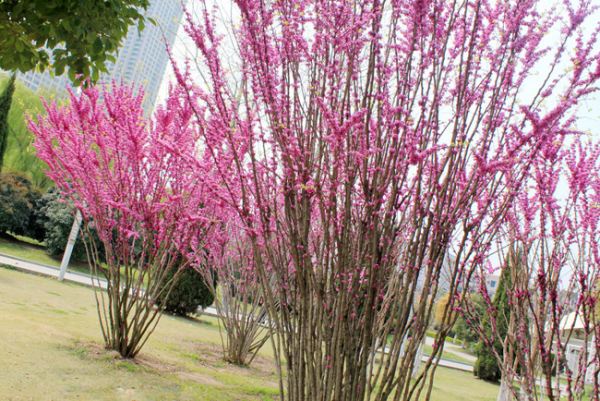 普通紫荆多为丛生灌木,巨紫荆为落叶大乔木,这是二者很明显的不同之处。
