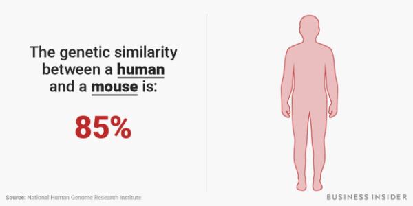 例如,我们人类和黑猩猩基因相似度达到了96%,和猫的基因相似度达到了90%,和老鼠的基因相似度达到了85%,甚至和果蝇的基因相似度达到了61%。