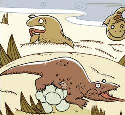 为了更加适应陆地环境,两栖动物逐渐进化出了可以模拟水中环境的羊膜卵。羊膜卵使两栖动物的繁殖可以离开水域,成为真正的陆地动物——爬行动物。