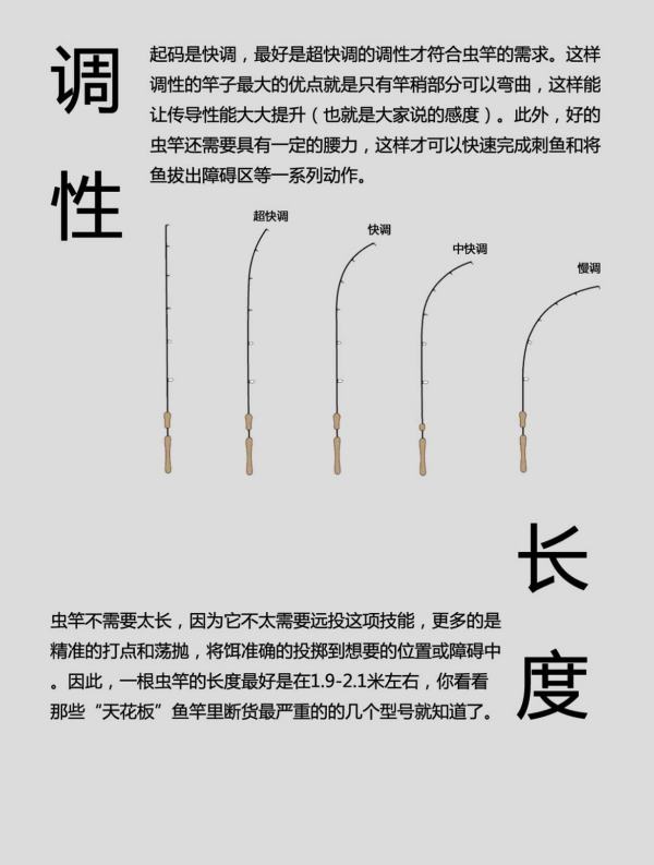 起码是快调,最好是超快调的调性才符合虫竿的需求。这样