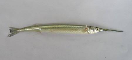 下图为 中间下鱵鱼 Hyporhamphus intermedius(间下鱵),俗名补网师,水针