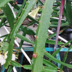 日常养护的话,偶尔浇透一次水就可以了,因为火龙果的枝条能储存有水分,所以也具有一定的耐旱力,一般露养让其自己接受雨露即可。