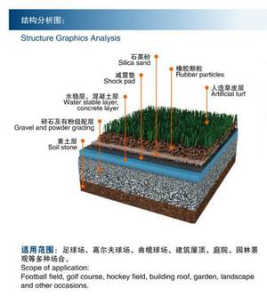 人造草坪不受气候影响,提高了场地的使用效率,而且人造草坪没有休眠期,一年四季常绿,给人带来一种四季如春的感觉。良好的弹性和牵引力使人造草成为适合广泛用于各类运动场地的理想材料,它被许多世界级运动员认可作为减少足部和膝盖受伤最优秀的地面材料之一,广泛使用于足球场、网球场、门球场,篮球场,跑道、高尔夫球场等各类运动场所。
