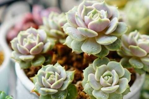 首先讲讲浇水:都说浇水三年功,可见浇水在养护中的重要性。很多新手对浇水总是拿捏不准,要不总是担心多肉不够水,经常浇,却发现多肉要不丑了,要不死了。要不就是觉得多肉不需要浇水,个把月放着不理,多肉渴死都不知。多肉浇水讲究“干透湿透”就是不干不浇,浇得时候一次浇透。这样算下来,基本一两个星期浇一次。生长期可以多浇,夏天休眠的时候就要控水了,可以根据多肉叶片的软硬程度来判断是否要浇水了。