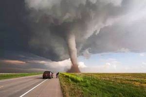 所以龙卷风不能看作是一个有很大破坏力帷幕在移动,而是一个急速旋转的物体(例如棍子)在移动,由于离心力的作用,风到不了中心点。另外龙卷风中心周围的风力大的惊人,有时比台风中心附近还大。