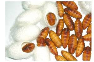 蚕吐丝结茧后经过4天左右,就会变成蛹。蚕蛹的形状像纺锤,分为头、胸、腹三段。头部小,有复眼和触角;胸部有胸部、脚和翅膀;鼓腹有九节。颜色是咖啡。专业人士可以通过蚕蛹腹部的线条和褐点来区分雌雄。蚕蛹发育时,体色为淡黄色。蛹体柔软柔软。